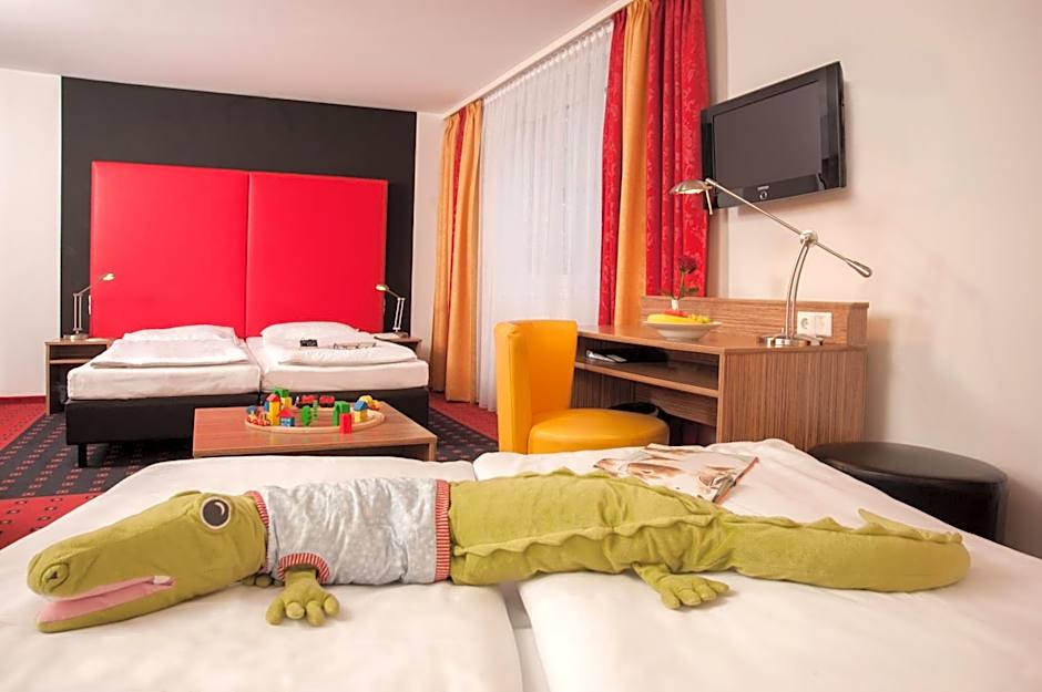 These modern rooms are decorated in red, black and yellow, and feature a flat-screen TV, a safety deposit box with laptop recharging capability and a mini-bar.